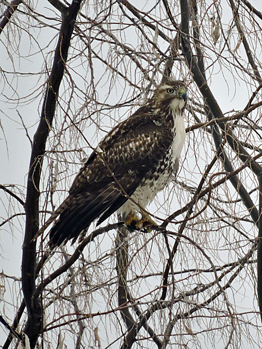 Interesting Red-tailed Hawk found at the west end of the Yakima, WA, airport. One raptor expert thinks it might be an Eastern RTHA, (Buteo jamaicensis borealis) or one from the population in the NE U.S. and eastern and central Canada that is a proposed new subspecies (B. j. abieticola). Jan. 6, 2016.