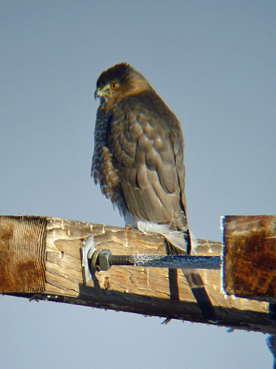 Adult Cooper's Hawk at the Alps Mobile Home Park southeast of Yakima, WA, during the Yakima Valley CBC. Dec. 18, 2011. Digiscoped.