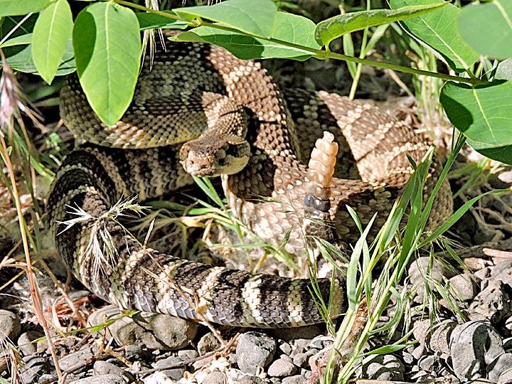 Coiled Western rattlesnake in Cowiche Canyon, Yakima County, WA. May 30, 2015.