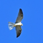 White-tailed Kite soaring over Anatolia Vernal Pool Preserve east of Sacramento, California, as it chased a Red-tailed Hawk. August 28, 2025. Viewed: 786 times.