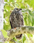 | Great Horned Owl in a mesquite tree in the large picnic area in the picnic loop in Catalina State Park, Oro Valley, Arizona. February 9, 2023.