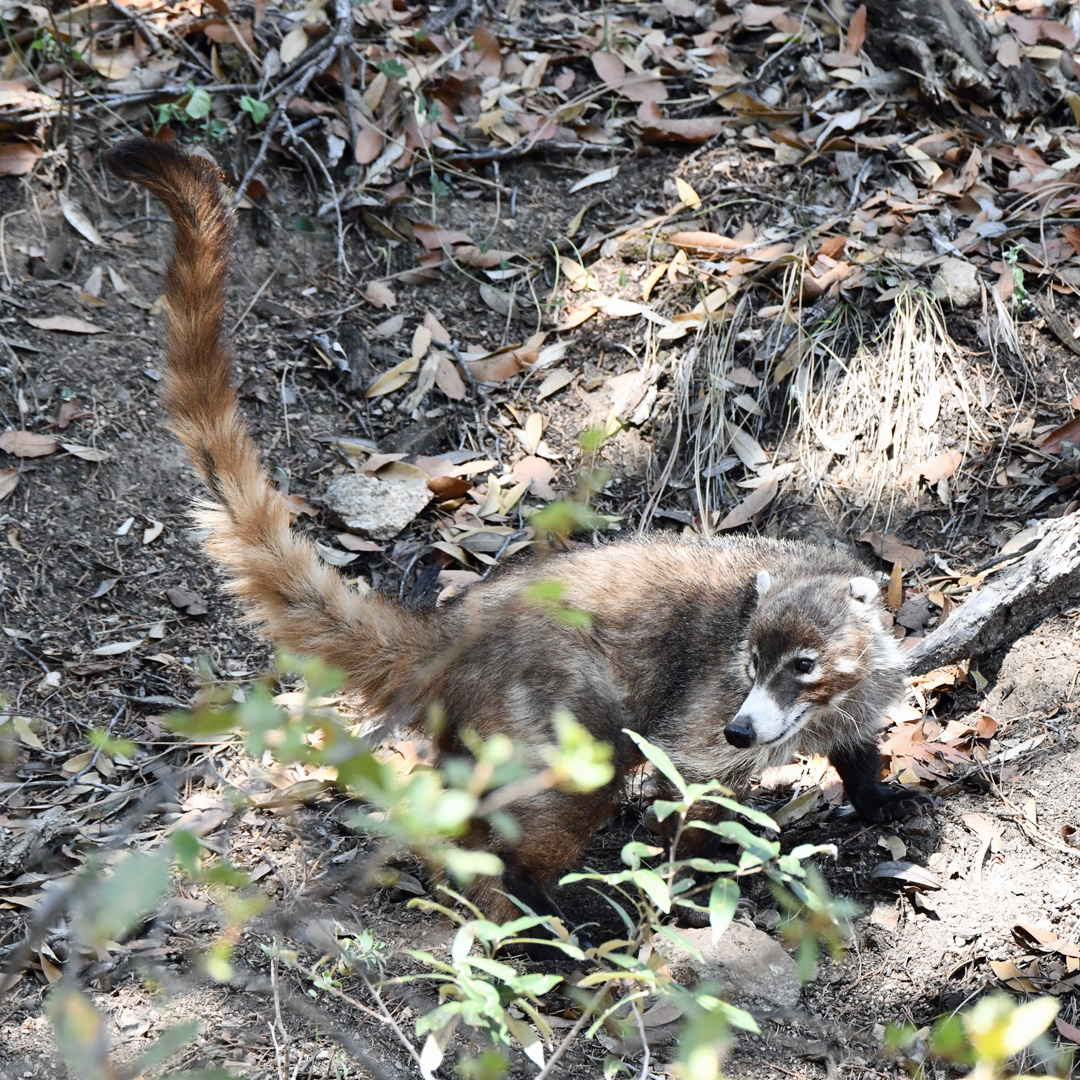 Coatimundi (or coati) along the Carrie Nation Trail in Madera Canyon, Santa Cruz County, Arizona. August 11, 2025.