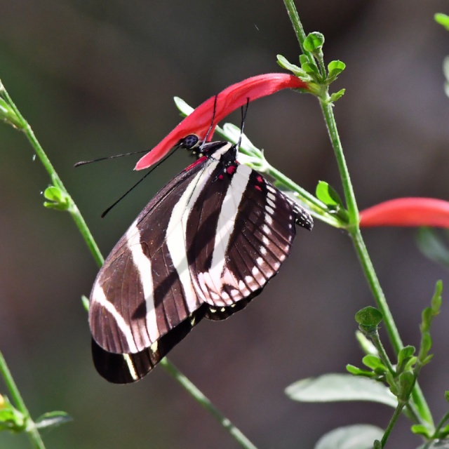 Underside of a Zebra Heliconian (Heliconius charithonia) at the Edinburg Scenic Wetlands in Edinburg, Texas. February 17, 2026.