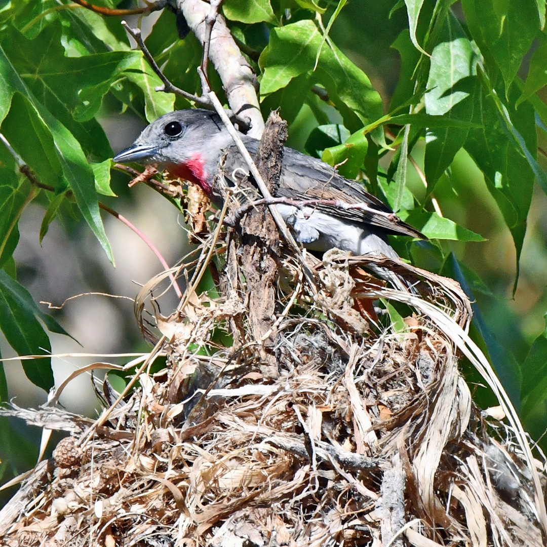 Rose-throated Becard on its nest along Harshaw Creek Road east of Patagonia, Santa cruz County, Arizona. August 6, 2025.