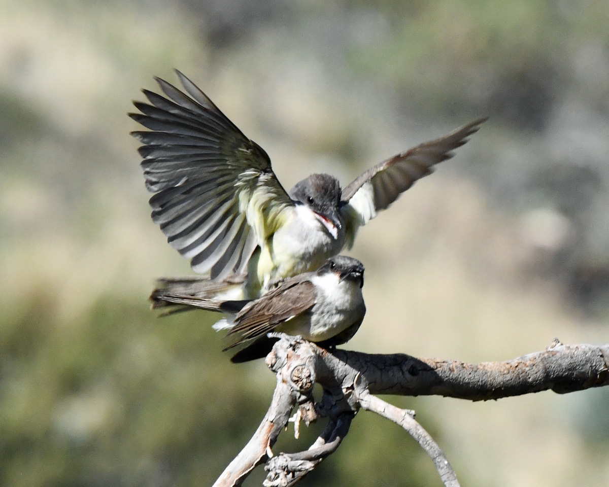 Thick-billed Kingbirds mating in Box Canyon near the old dam, Pima County, Arizona. August 8, 2025.