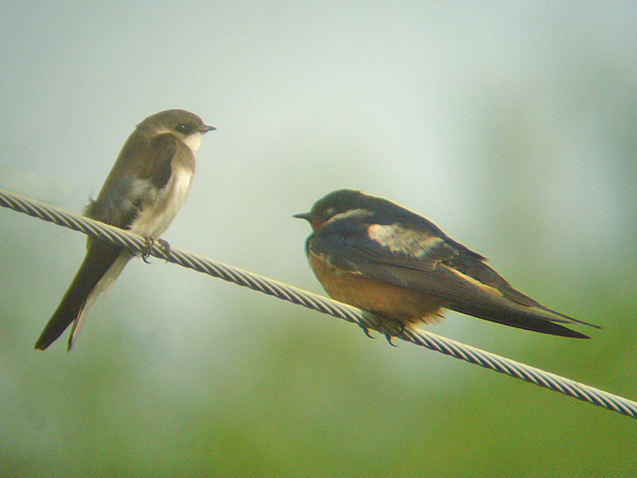 Bank Swallow (left) and Barn Swallow along Lateral C southwest of Toppenish, WA. May 26, 2008. Digiscoped.
