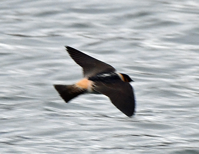 Cliff Swallow flying over the pond at Canoa Ranch south of Green Valley, Arizona. March 14, 2025.
