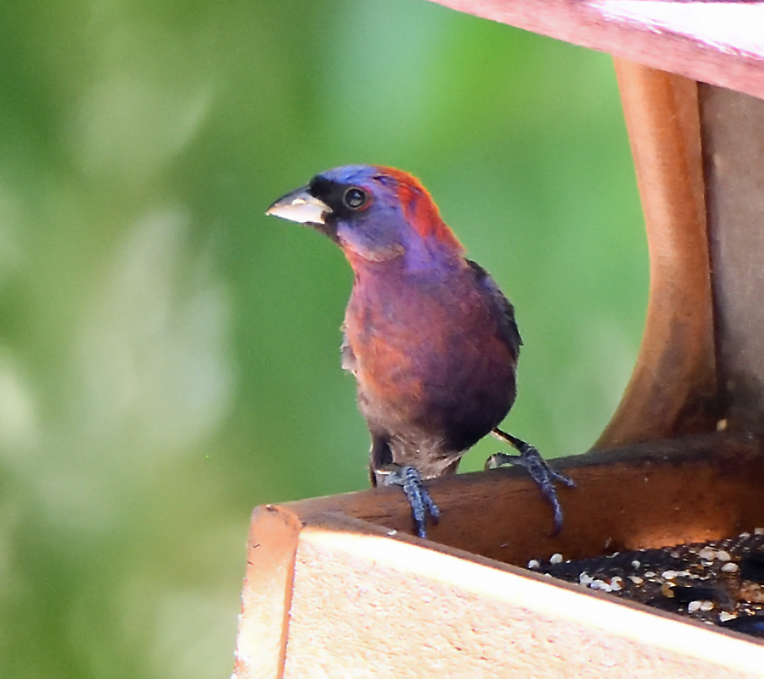 Varied Bunting on a feeder at Santa Rita Lodge in Madera Canyon, Santa Cruz Cunty, Arizona. Augusts 8, 2025.