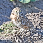 Burrowing Owl beside its winter roosting site (a piece of drain pipe) on the Evergreen Turf Sod Farm along Tweedy Road in Pinal County, Arizona. January 9, 2024. Viewed: 570 times.