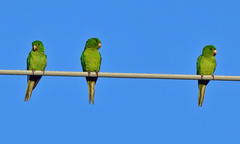 Green Parakeets just north of I-69 along S. Ed Carey Dr. in Harlingen, Texas. There were 150 that morning and none the next day. January 1, 2026.