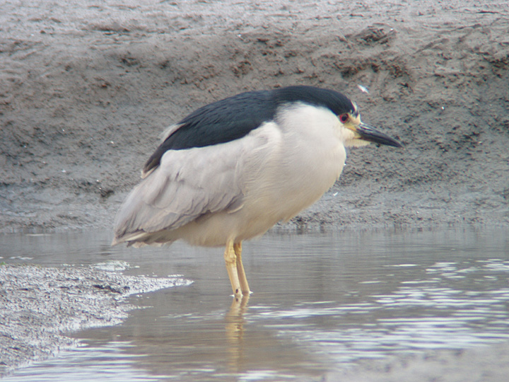 Black-crowned Night-Heron on the mudflats of Bolinas Bay, CA. July 22, 2005. Digiscoped.
