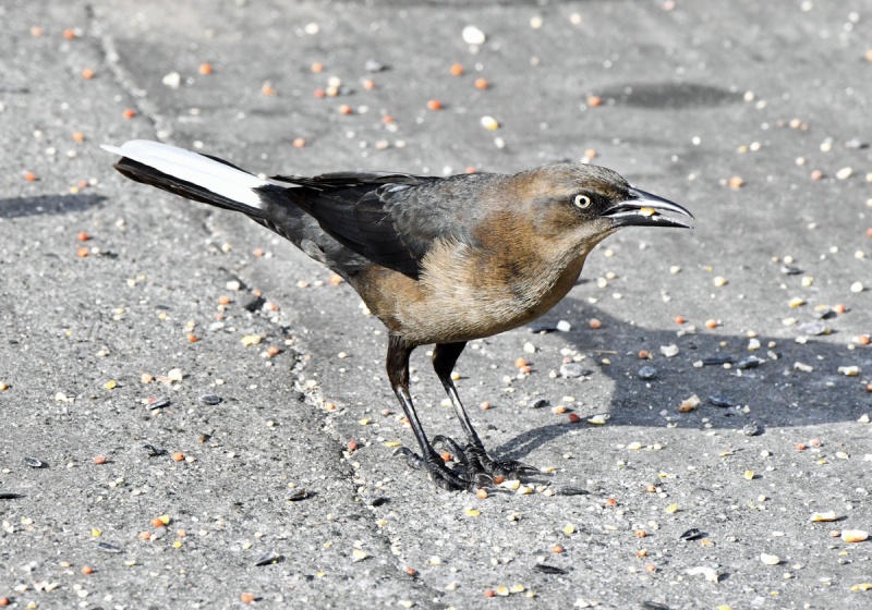 Female Great-tailed Grackle in Ventura, California, with some white tail feathers. November 13, 2025.