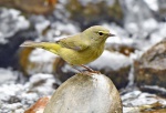 | Orange-crowned Warbler on the rock water feature in our patio southwest of the Yakima, WA, airport. Sept. 13, 2013. Viewed: 1333 times.