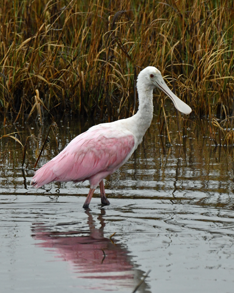 Roseate Spoonbill along Sportsman Road on Galveston Island, Texas. December 1, 2025.