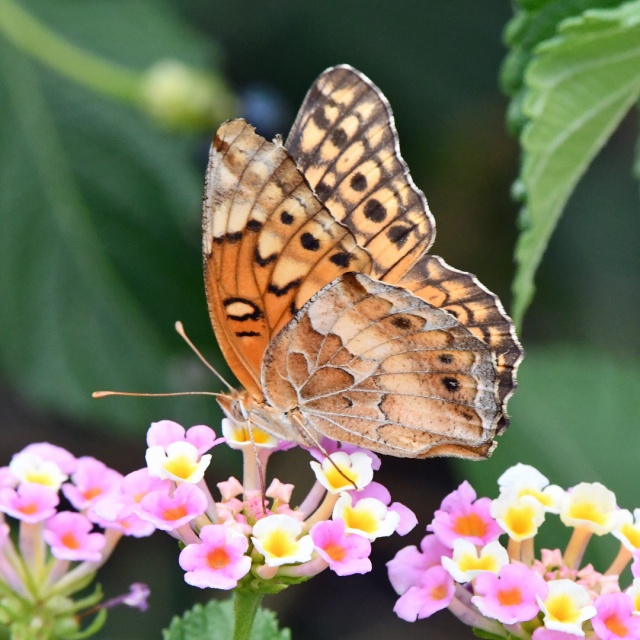 Variegated Fritillary (Euptioeta claudia) in the butterfly garden in the city park in Patagonia, Arizona. August 8, 2025.