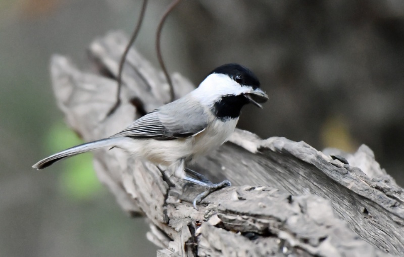 Carolina Chickadee, with a tasty sunflower seed, at the Agarita Bird Blind in South Llano River State Park south of Junction, Texas. November 23, 2025.