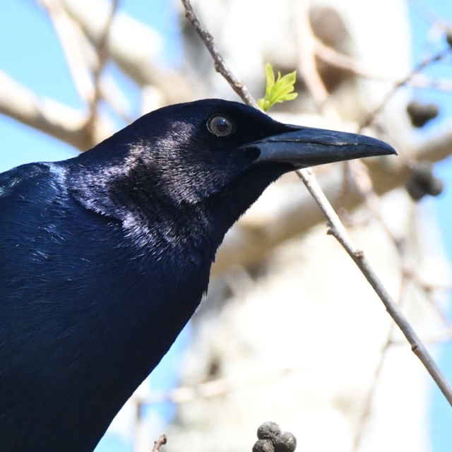 Close-up of the Boat-tailed Grackle at the Guadalupe Delta WMA boat launch in Calhoun County, Texas. February 28, 2026.