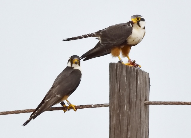 Aplomado Falcons at the Fish Pass area in Mustang Island State Park, Nueces County, Texas. March 1, 2026.