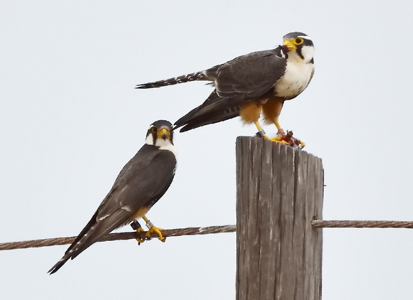Aplomado Falcons at the Fish Pass area in Mustang Island State Park, Nueces County, Texas. March 1, 2026.