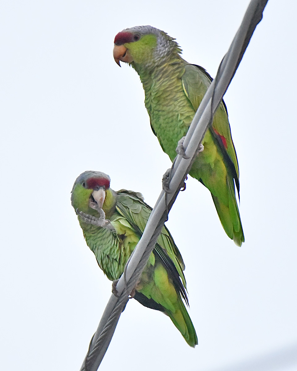 Lilac-crowned Parrots along Lexington Avenue in El Cajon, California. November 14, 2025.