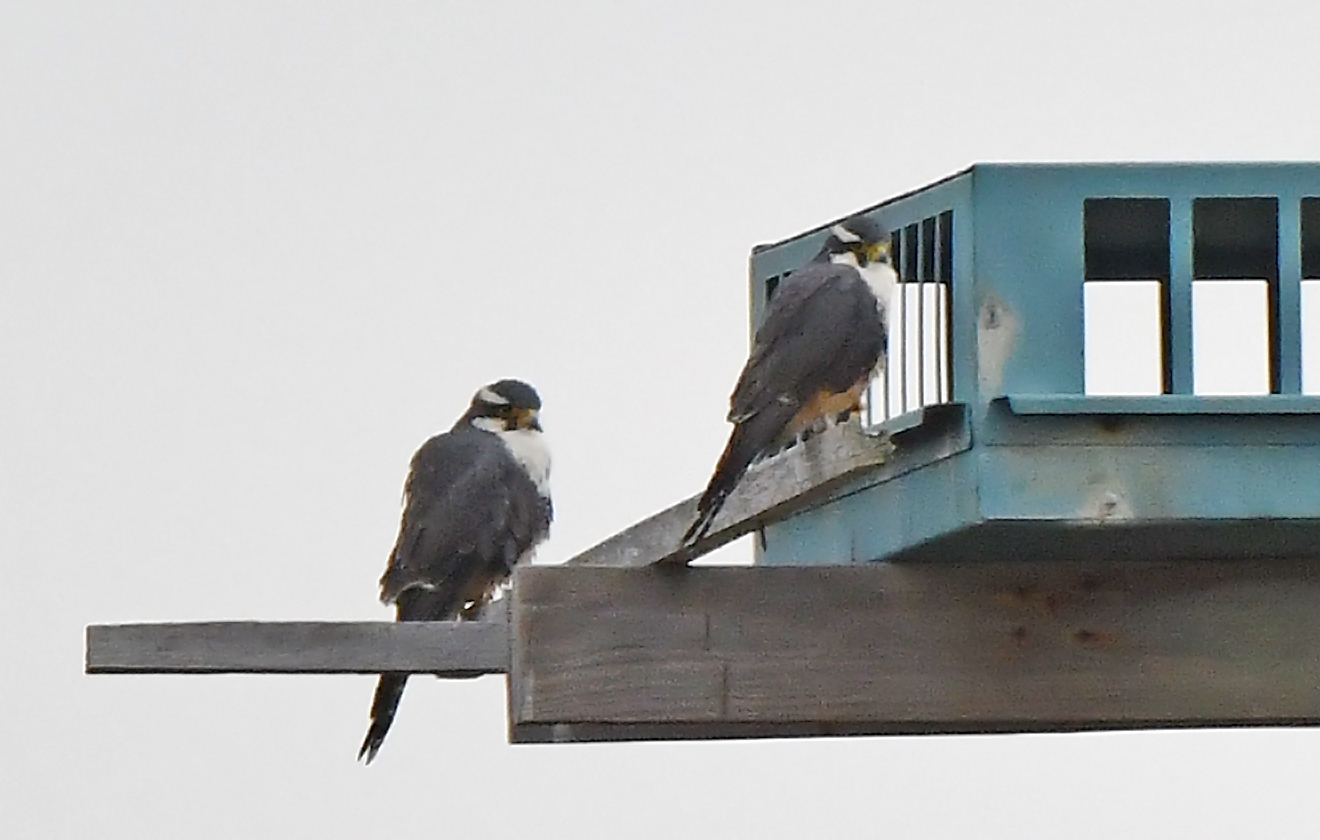 Aplomado Falcons on their nesting platform in Mustang Island State Park south of Port Aransas, Texas. January 12, 2026.