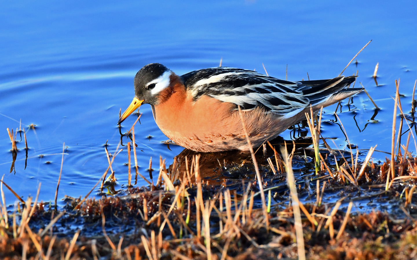 Red Phalarope near Utqiagvik, Alaska, shortly before midnight on June 17, 2025.