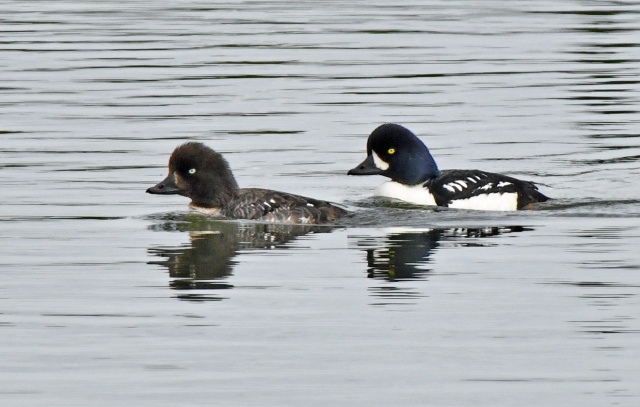 A pair of Barrow's Goldeneyes on Lake Spenard in Anchorage, Alaska. June 5, 2025.
