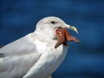 | The Glaucous-winged Gull that tried to swallow more than it could chew at the Point Brown Jetty, Ocean Shores, WA. Aug. 31, 2013. Digiscoped. Viewed: 2224 times.