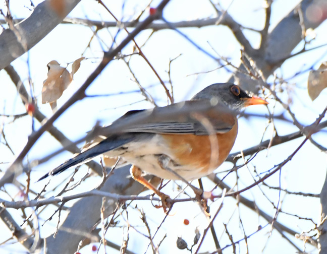 Rufous-backed Robin along Blue Haven Road near Patagonia, Arizona. January 15, 2024.