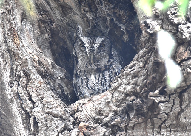 Eastern Screech-Owl roosting in a tree cavity at the National Butterfly Center south of Mission, Texas. December 5, 2024. (Its the same cavity in the same tree as the photo to the left. Is it the same owl?)