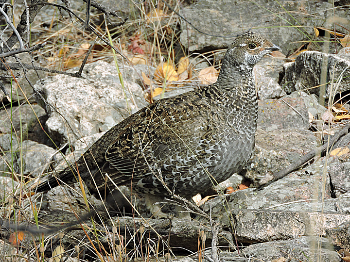 Female Dusky Grouse at the Hellroaring Creek Trailhead in Yellowstone National Park. September 26, 2020.