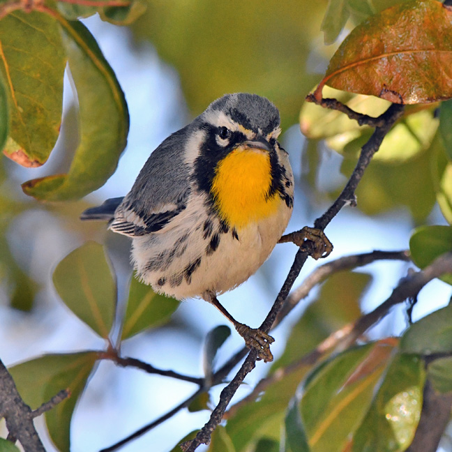 Another shot of the Yellow-throated Warbler in a tree at N. Mountain Ave. and E. Speedway Blvd. in Tucson, Arizona. January 27, 2025.